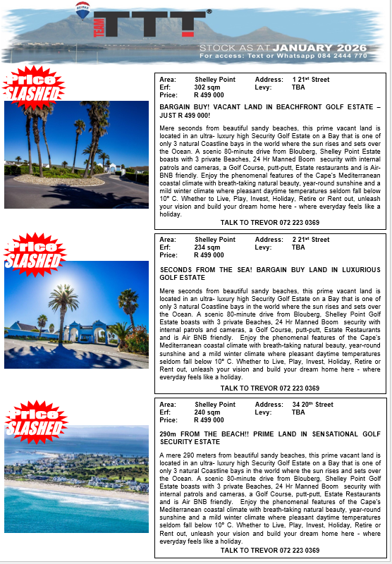 [envira-gallery id="18779"] ADDRESS; 43 Protea Drive Gordons Bay ERF SIZE: 743 sqm PRICE: R2 399 000 PRIME VACANT LAND ON GORDON BAYS PRESTIGIOUS MILLIONAIRE’S ROW An exceptional opportunity to secure vacant land on the very highest road in Gordon’s Bay, affectionately known as Millionaire’s Row — one of the area’s… Read More