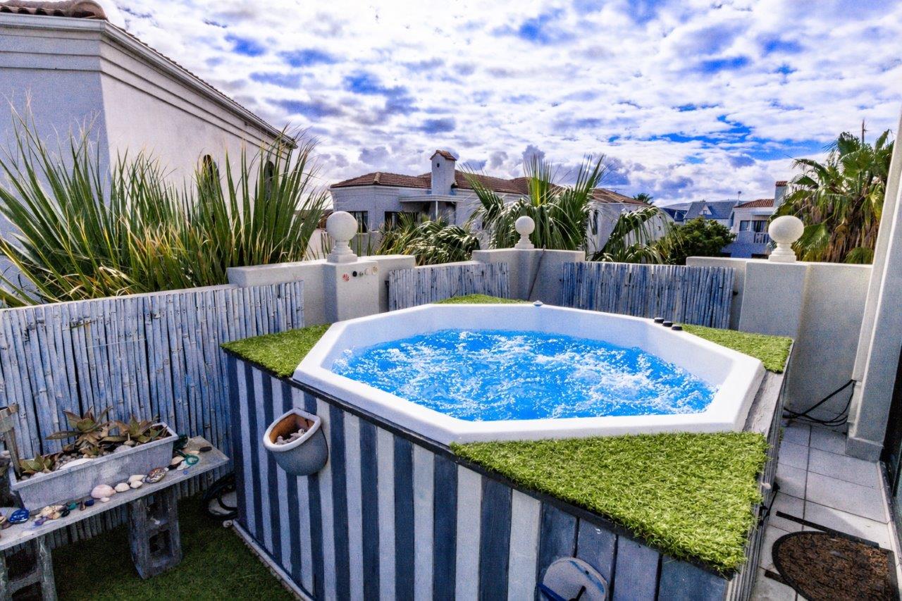 The phenomenal property flaunts with: 3 double sized luxury bedrooms, 3 modern bathrooms (with Master en suite and Guest Loo), huge upstairs air-conditioned lounge and wet bar with trendy American shutters flowing onto a large private entertainment deck with Jacuzzi and Braai and sunny North West exposure, Under-floor heating throughout the Penthouse, fully fitted Kitchen with range of top and bottom cupboards, granite tops and gas cooker, lock up automated garage, private parking and communal swimming pool.